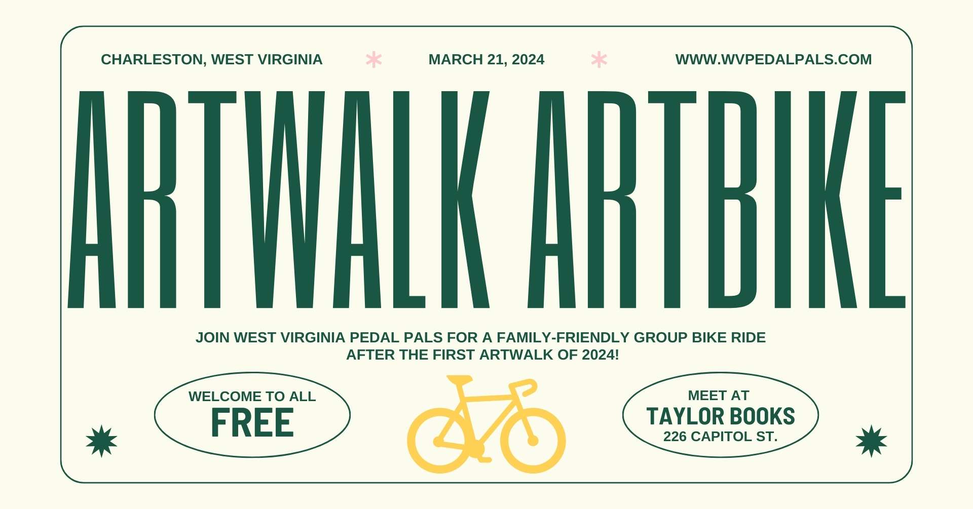 Join Community Captain Sam on Sunday, March 17 for a St. Patrick’s Day group bike ride on the seat of your very own bicycle. Meet at 5:30pm at Taylor Books (226 Capitol Street, Charleston, WV, 25301) and we will depart on this approximately 1-hour, 5.5-mile ride around the Historic Downtown and East End neighborhoods of […]